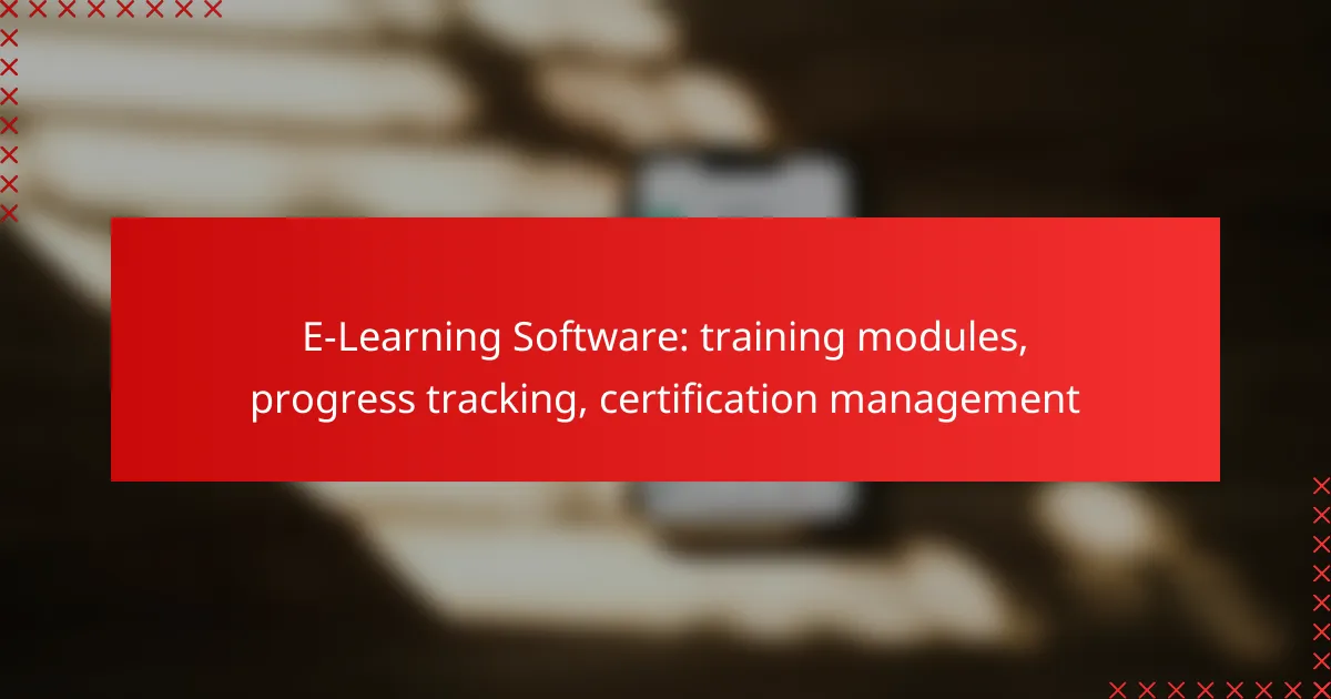 E-learning software offers robust solutions for creating training modules that enhance learning through customizable content and interactivity. These platforms not only facilitate progress tracking with analytics and assessments but also streamline certification management, ensuring efficient compliance and record-keeping.